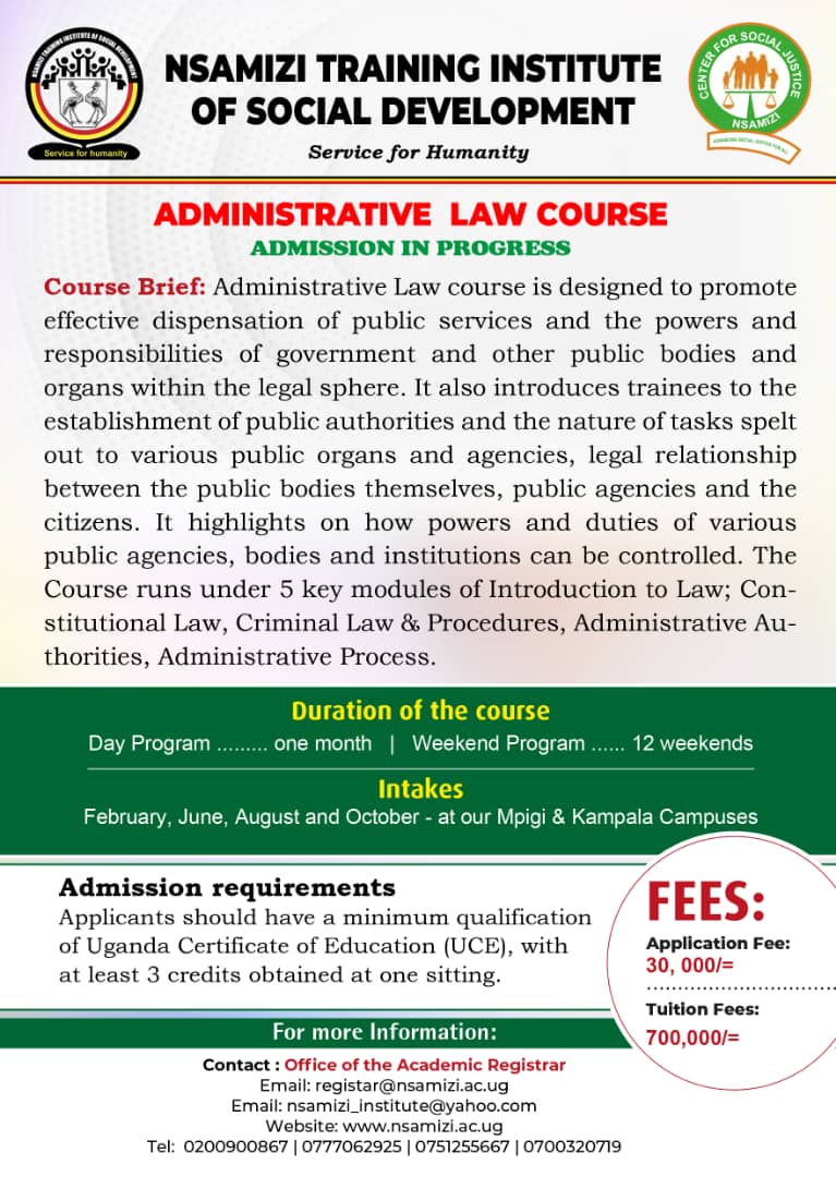 Nsamizi Training Institute of Social Development is the only government Tertiary Institution under TVET that is envisioned to teach Social development
