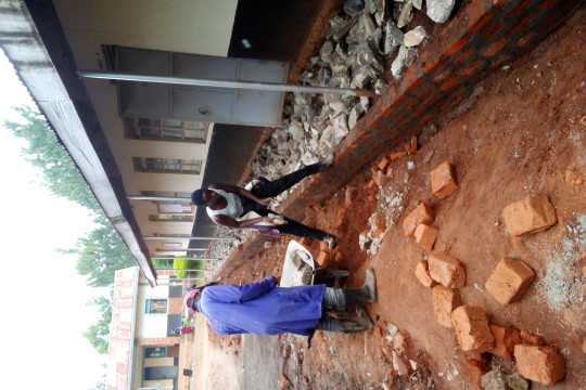 Building students producing blocks using hydro form machine